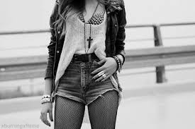 Elements: Distressed denim, cut-offs, plaid, floral dresses, combat boots, jackets, oversized clothing, leather jackets, black tights, round sunglasses.